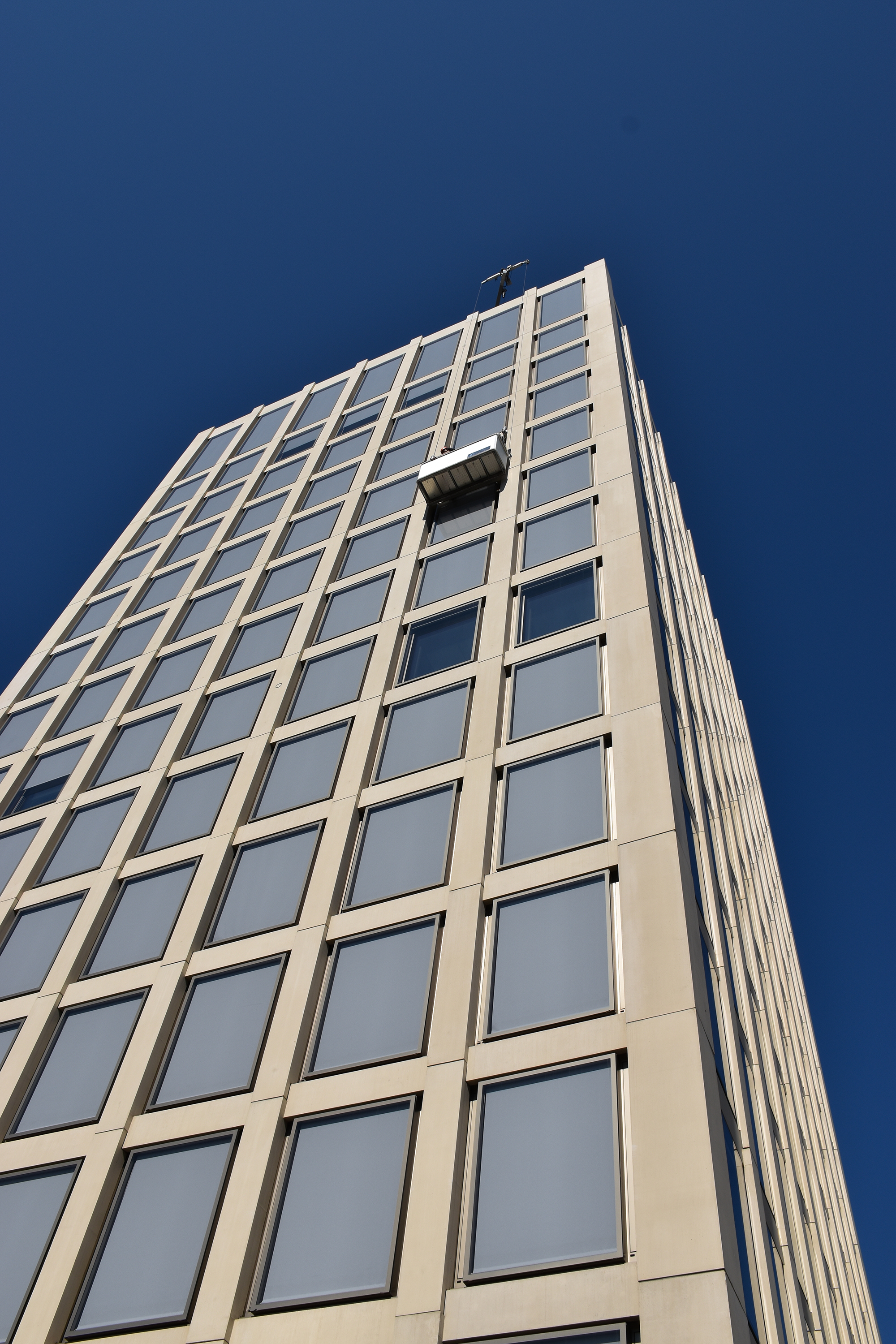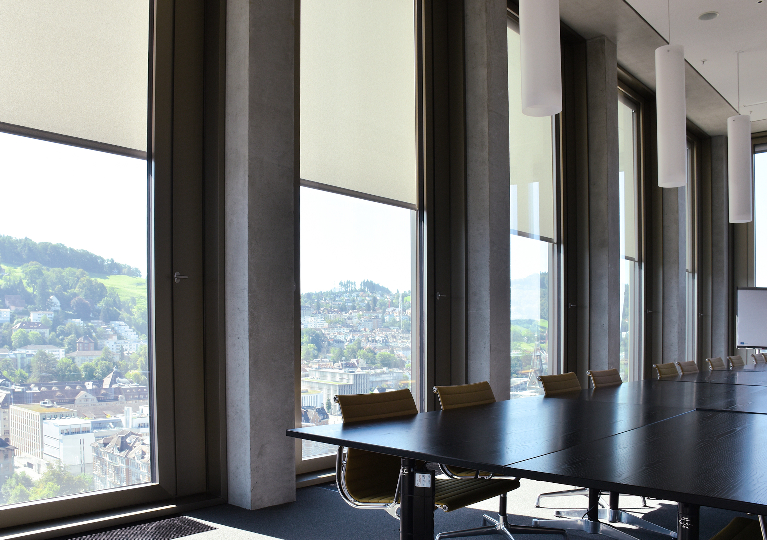 Die kabelgebundene Version des SunTop M ist speziell für den Betrieb verschiedener Arten von textilem Sonnenschutz (Wellen ab 50 mm) geeignet. Mit der rund 30 % schnelleren Laufzeit konnte man letztendlich gewährleisten, dass die Wärmeentwicklung im Zwischenglas weniger stark wurde und die Antriebe spürbar weniger Fehleranfälligkeit aufwiesen. Entsprechende Tests wurden vorab simuliert. Über einen Außenlift erfolgte schließlich der komplette Umbau der Antriebe und Beschattungsgewebe.