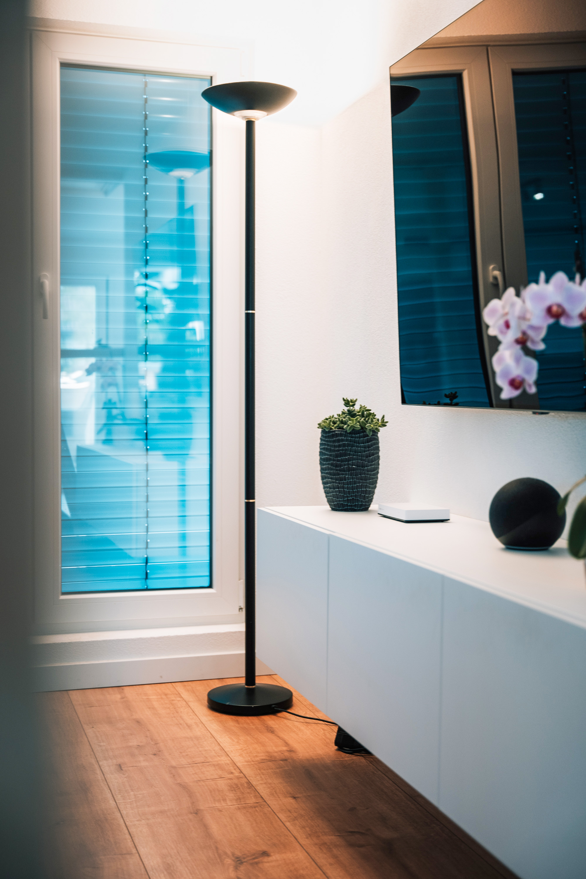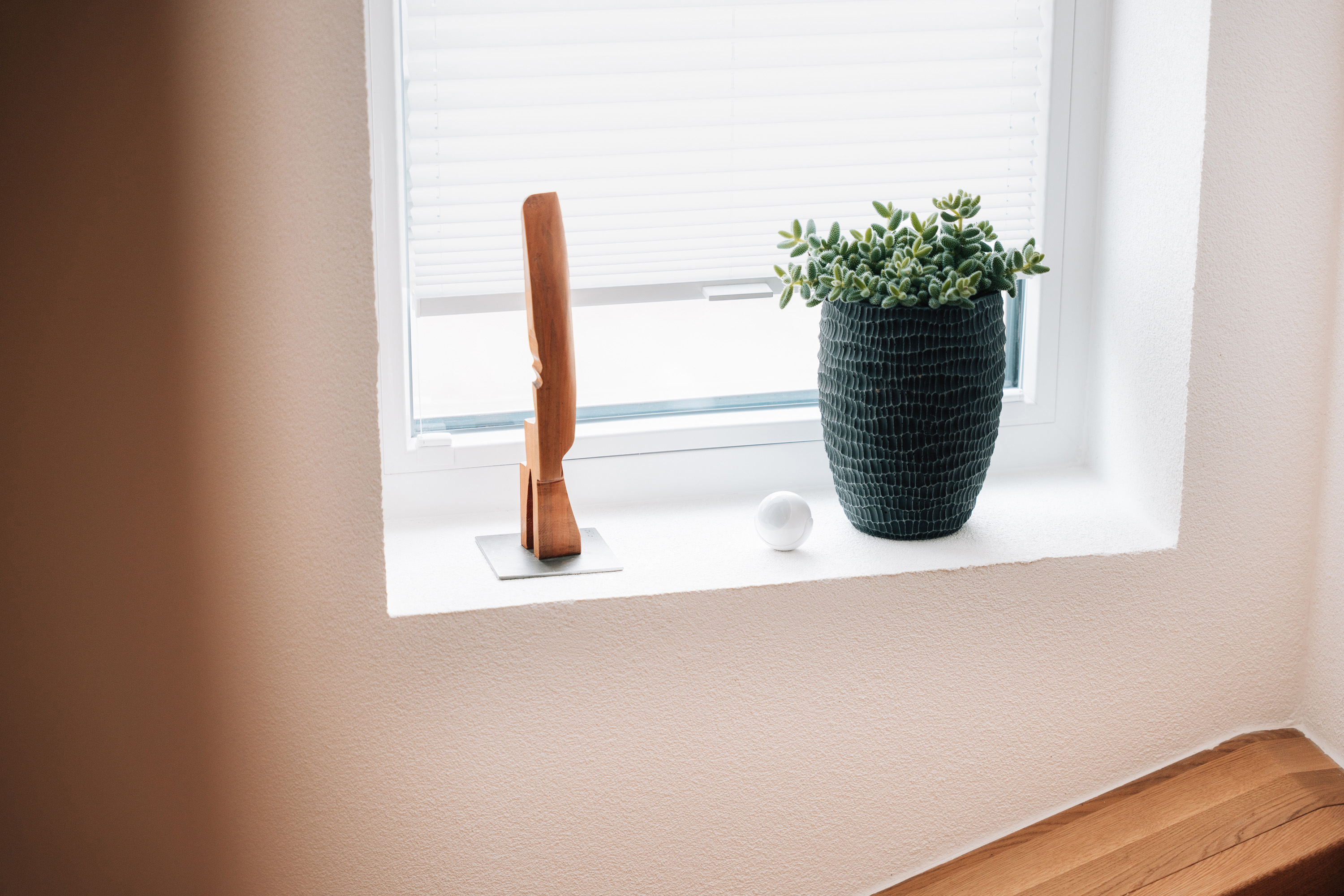 Platziert auf der Fensterbank fügt sich der Bewegungssensor Nice Motion-Control unauffällig und ebenso stilvoll wie die übrigen Dekoelemente in den Eingangsbereich ein.