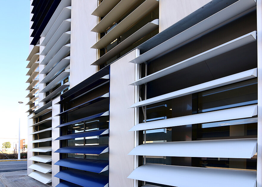 Das Projekt wurde vom Architekturbüro Sanahuja & Partners entworfen und steht ganz im Zeichen der „biophilen Architektur“. Dieser architektonische Ansatz versucht die Natur stärker in das Gebäudeinnere zu bringen. Außenliegende Sonnenschutzsysteme sind ein Beispiel dafür, wie intelligente Gebäudetechnologien genutzt werden, um biophile Ziele zu erreichen: Sie steuern den Einfall des Sonnenlichts und reduzieren somit eine direkte Einstrahlung. Dynamische Fassaden spenden Schatten für Gebäude und können auf umweltfreundliche Weise Strom erzeugen. Außerdem sorgt eine angemessene Tageslichtsteuerung für eine angenehme Beleuchtung der Innenräume und somit für ein gesünderes Arbeitsklima. Die spanische Nice-Niederlassung und elero erarbeiteten gemeinsam mit Umbelco, einem Anbieter von Sonnenschutzjalousien mit mehr als zwanzig Jahren Erfahrung, eine Lösung zur optimalen Nutzung des Sonnenlichts.
